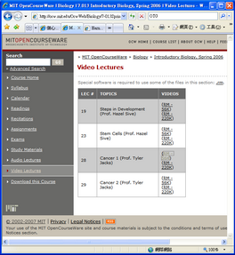 3. [網站] MIT OpenCourseware (OCW) (http://ocw.mit.edu/index.html):我們都知道目前iBT托福會有許多的堂課(lecture)考題,在台灣,採用全英語教學的學校仍然不多,這時候這個網站所提供的免費課堂語音或影像檔就是一個不錯的練習網站(如左圖)。